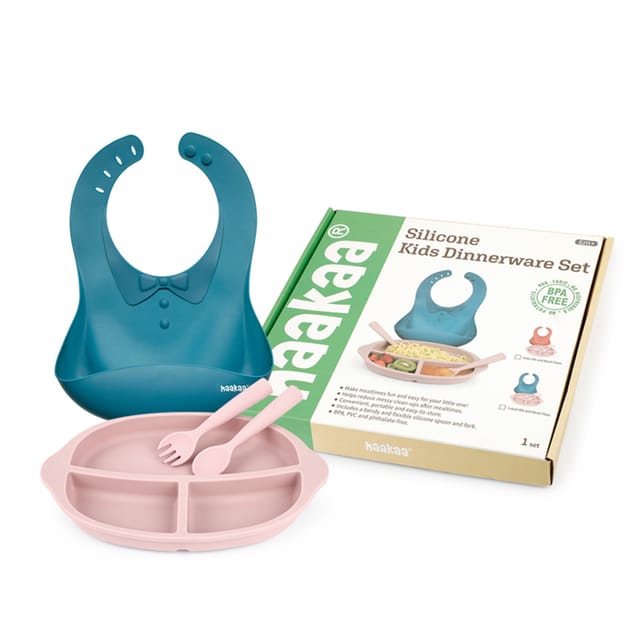 Set de Vajilla y babero de Silicona (Babero Cobalt/Plato blush)